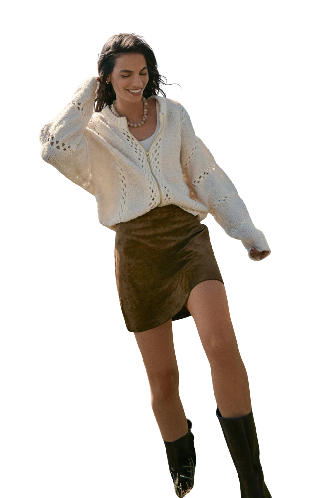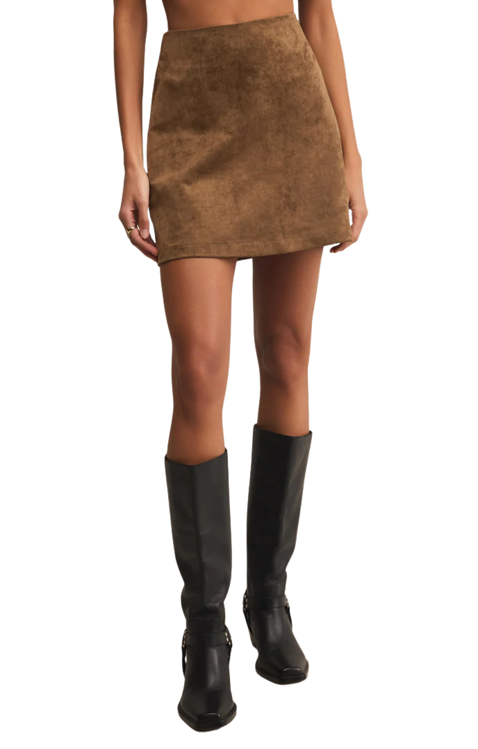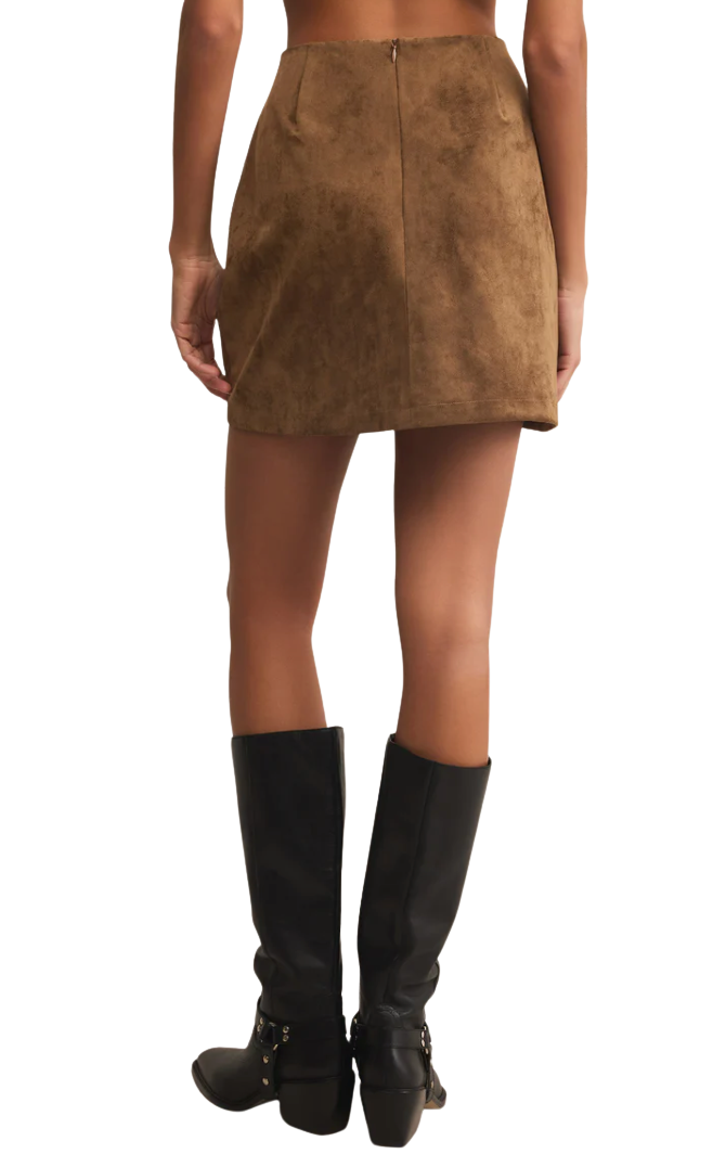 Buttery soft, perfectly tailored. This faux suede mini hugs just right with a clean zip-back design, made to pair with your coziest sweaters and favorite boots.