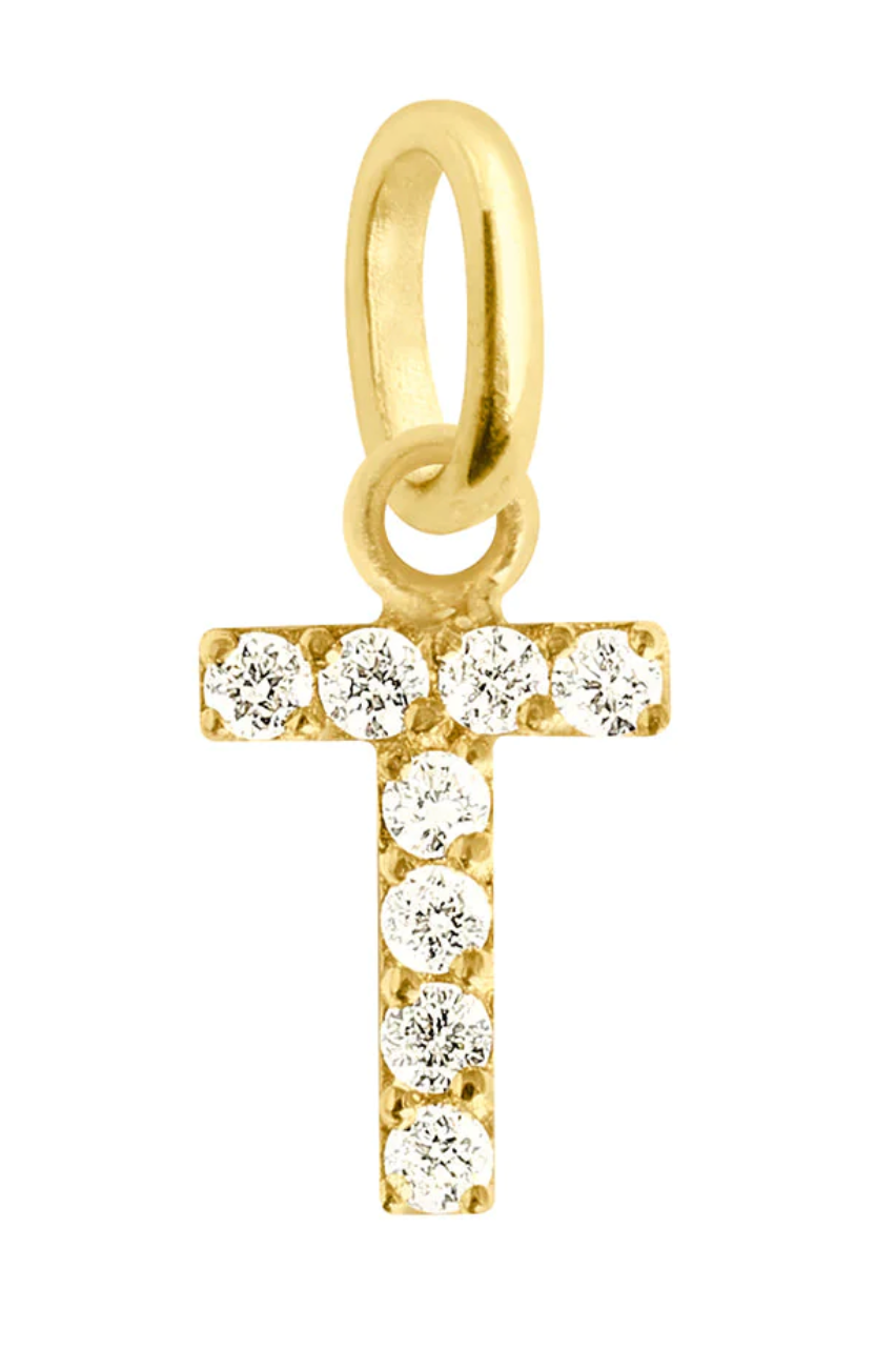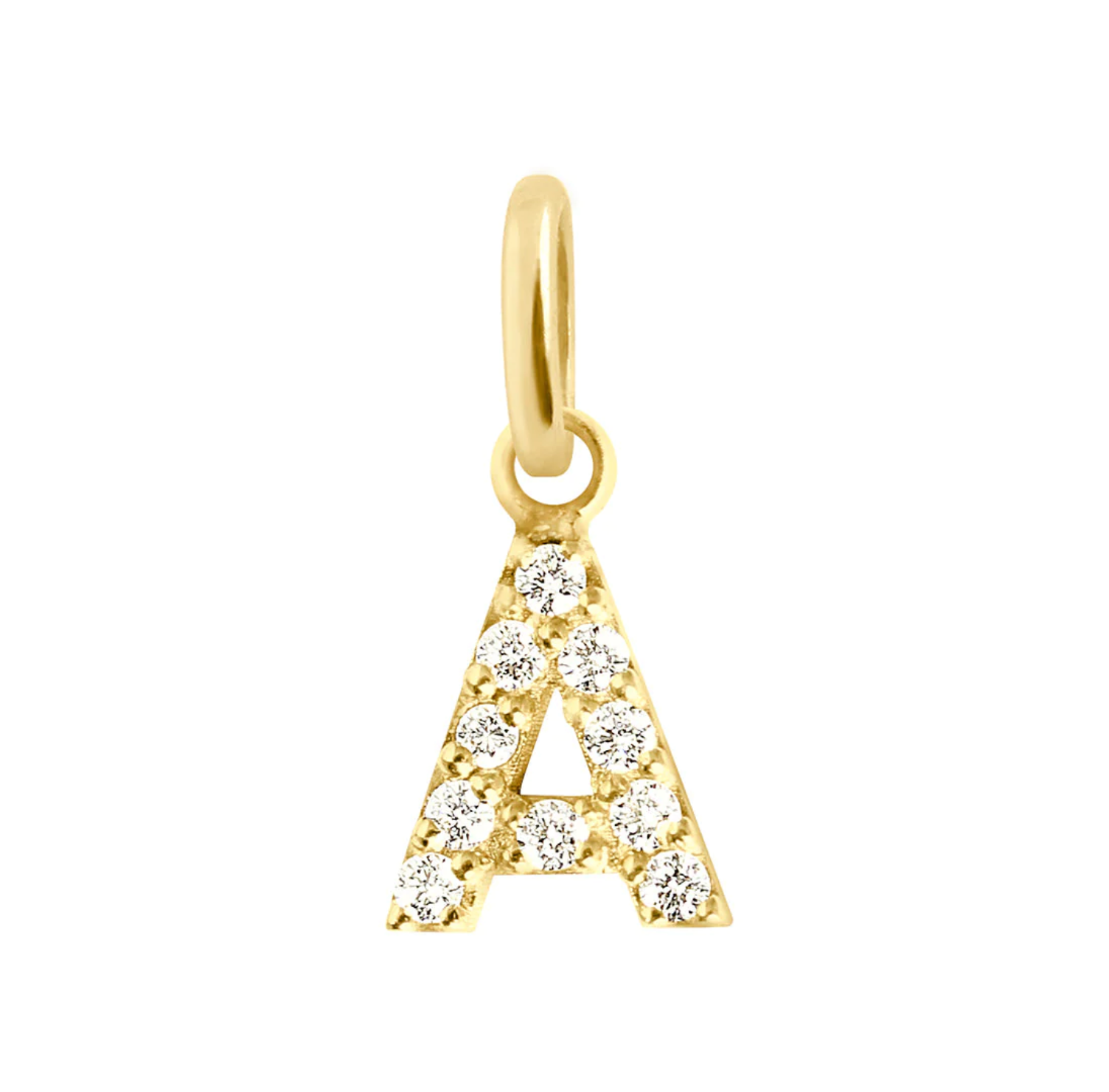 To collect or wear alone. Letter pendant in 18 carat yellow gold and 11 diamonds.