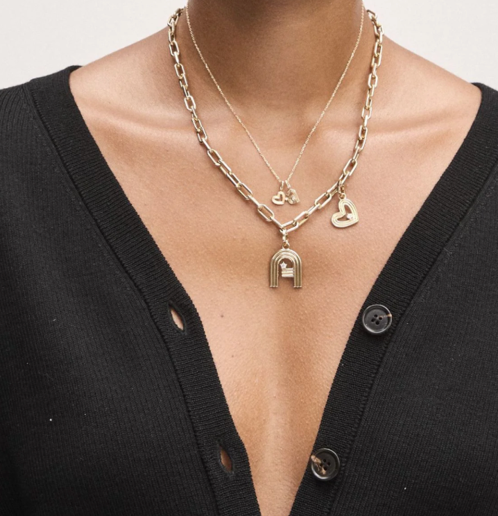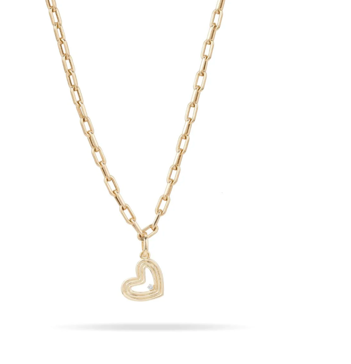 14k yellow gold heart charm with a prong-set diamond.