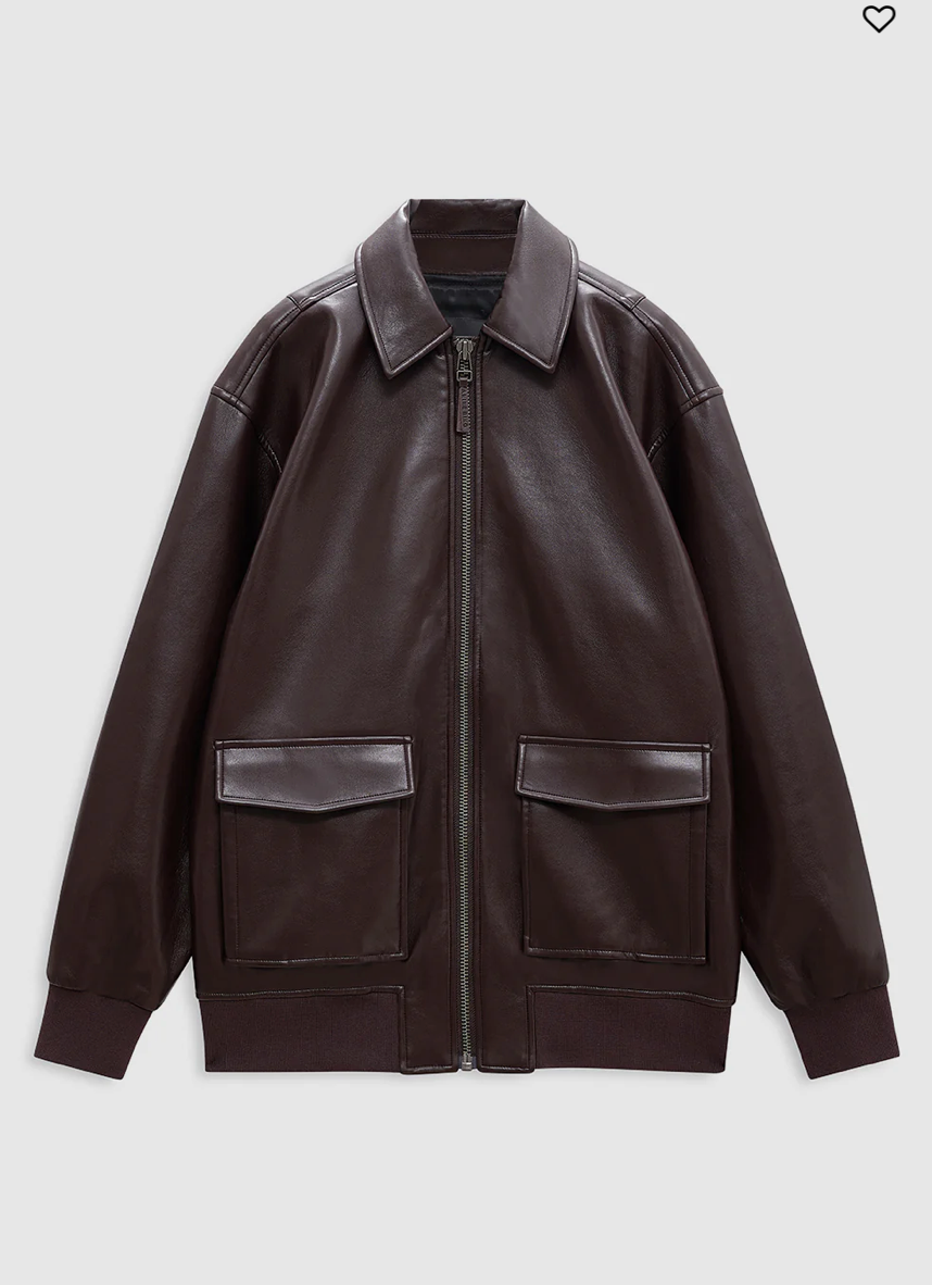 An oversized jacket featuring utility-inspired details made from midweight 100% regenerated leather in deep brown.