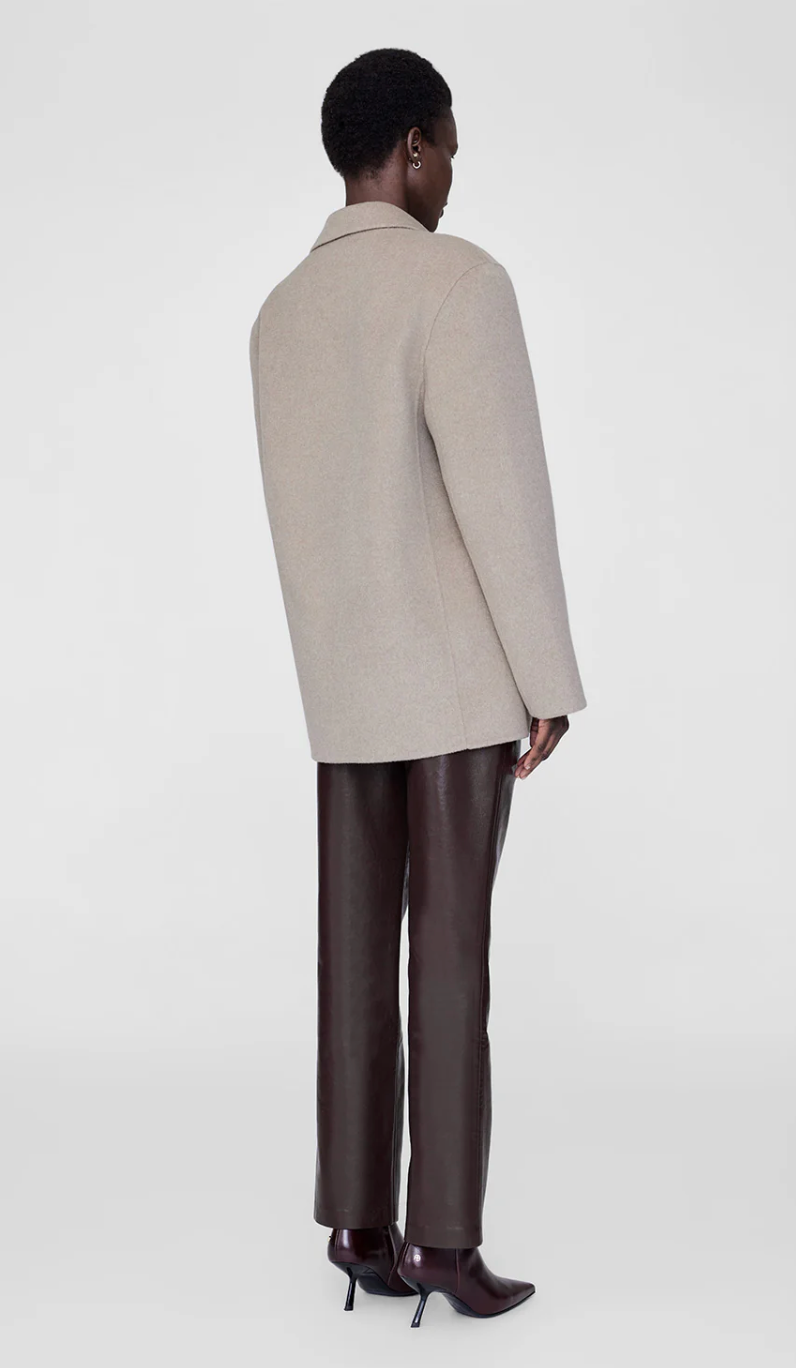 An unconstructed blazer made from a heavyweight, double-faced wool-cashmere blend, featuring a classic oversized fit, notched collar, and single-breasted closure with two buttons.