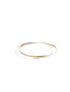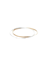 What lightweight stacking dreams are made of. Set of 2 high-shine bangles. This water-durable design brings major impact to your stacking game with zero weight. Dane is super easy to put on and remove. To open, gently pull apart the bangle at the seam, rotating the tubes in opposite directions. Close by rotating back to the seam, and inserting the smaller tube into the opening. As this stainless steel is a very durable material, it can withstand some water exposure. The perfect piece to wear if you don’t intend to take it off. The circumference measurement of the bangles are 6 1/2" and 7 3/8", so make sure to add a little extra space for comfort of movement. One bangle is finished in high-polish rhodium, and the other is finished in high-polish gold.