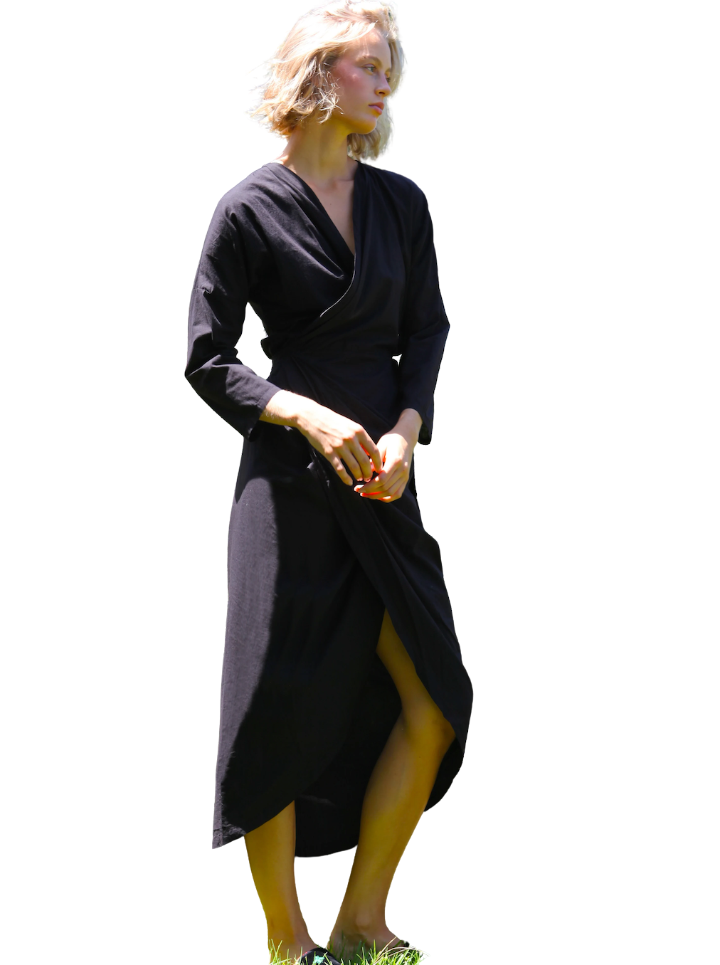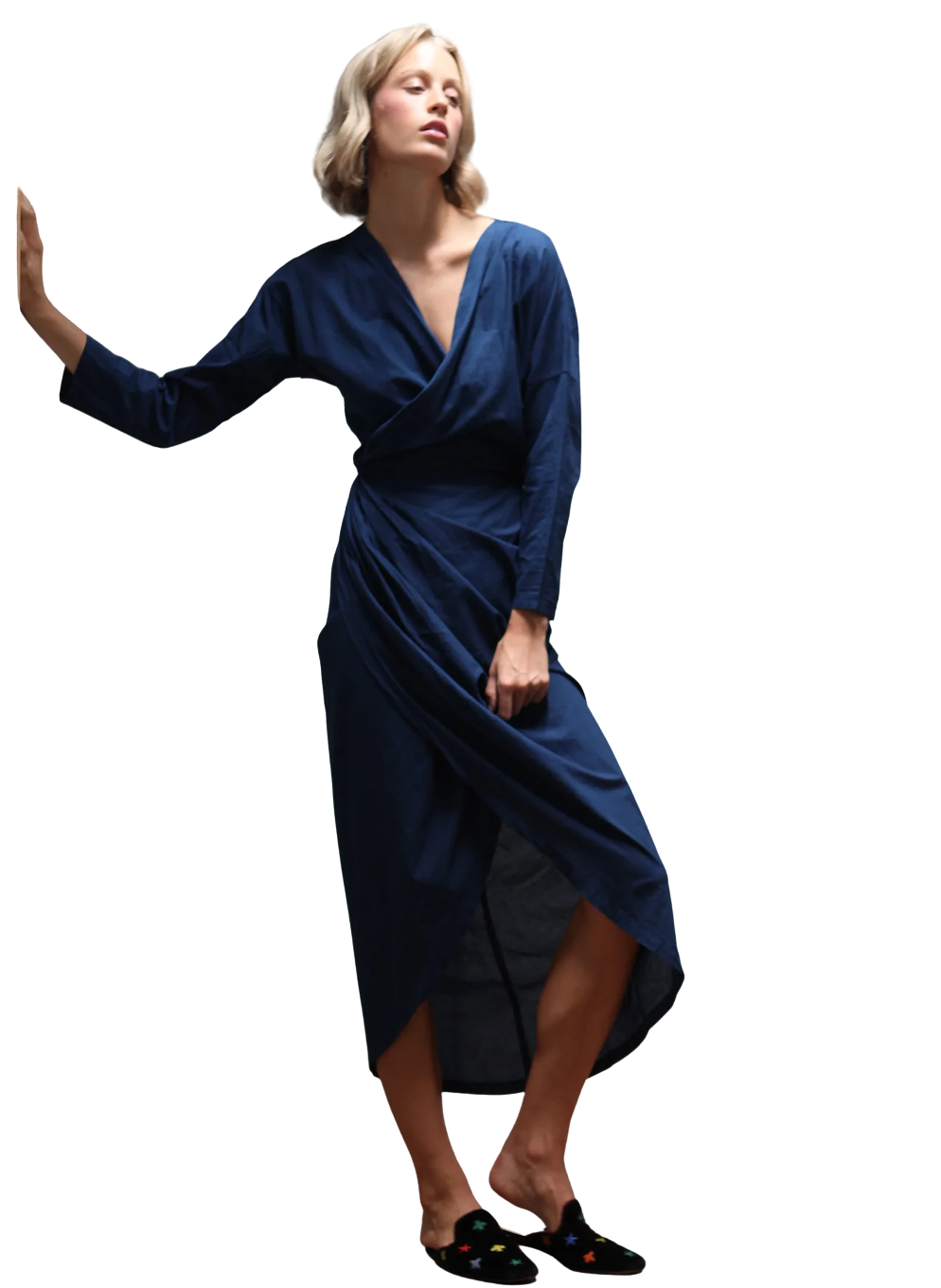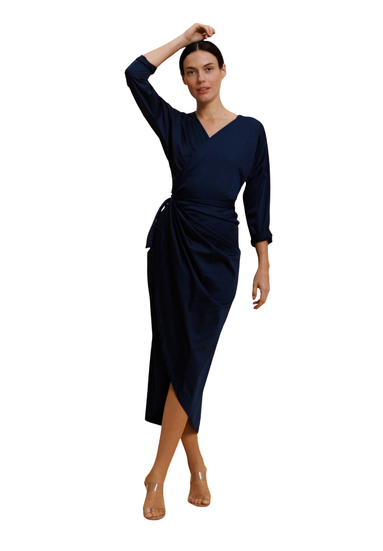 Our new favorite WRAP DRESS is a must-have for any girl's wardrobe. Featuring a flattering wrap design and 3/4 length sleeves, this midi dress is made from high-quality cotton for a luxurious fit. Its timeless design makes it the perfect choice for any occasion, while still evoking that California effortless chic sensibility. Made from 100% cotton.