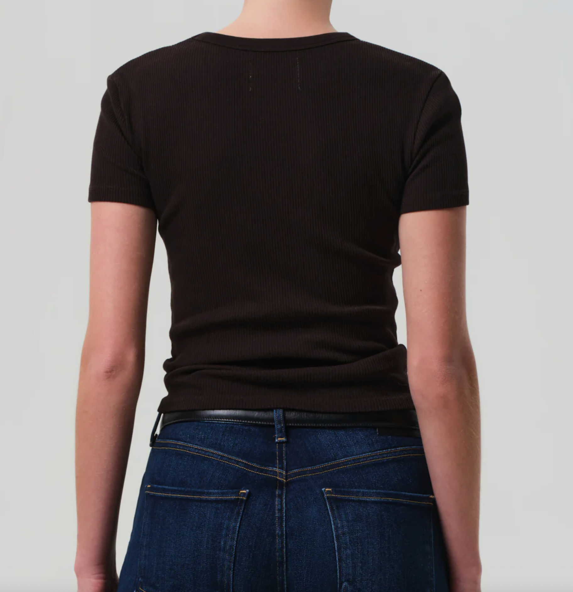 Looks Like: Dark chocolate brown short sleeve scoop neck tee