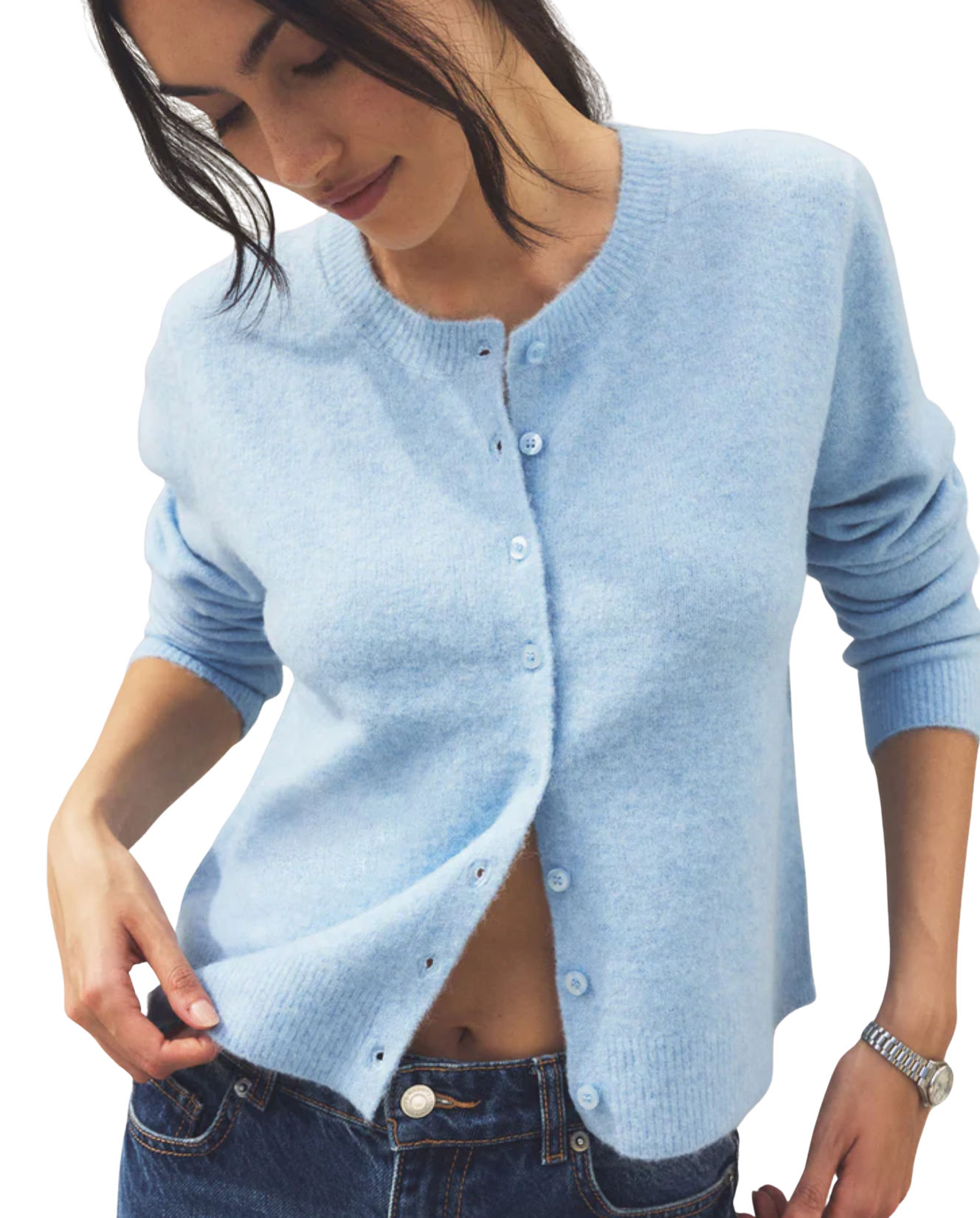 This relaxed crewneck cardigan is made from cozy sweater yarns with an easy button-up front that’s perfect for layering. Whether tossed over a tank or worn solo, it’s the ideal go-to for cozy, casual days.