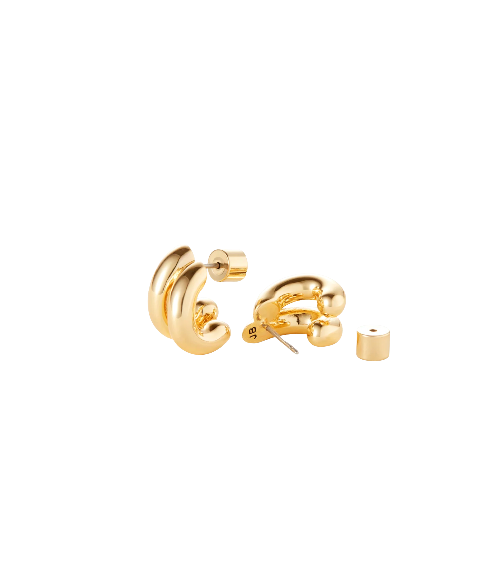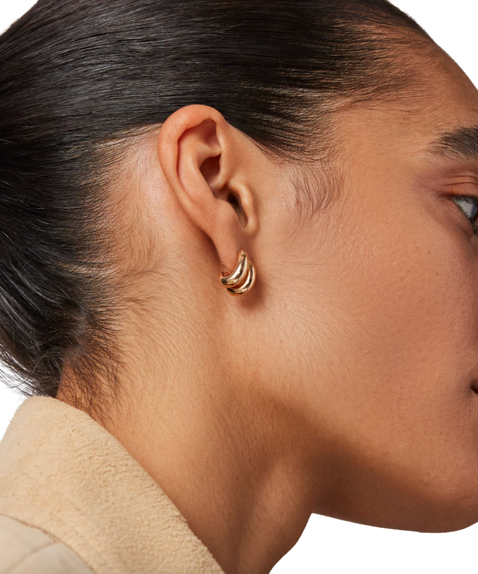 JB's most talked-about earrings in a shrunken size. This custom design wears like a huggie in a single piercing, while creating the illusion of two hoops stacked together. Plus, they're micro-light so you won't even feel them on. Finished in high-polish 14k gold