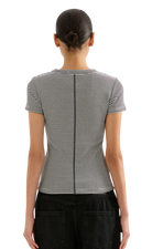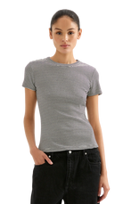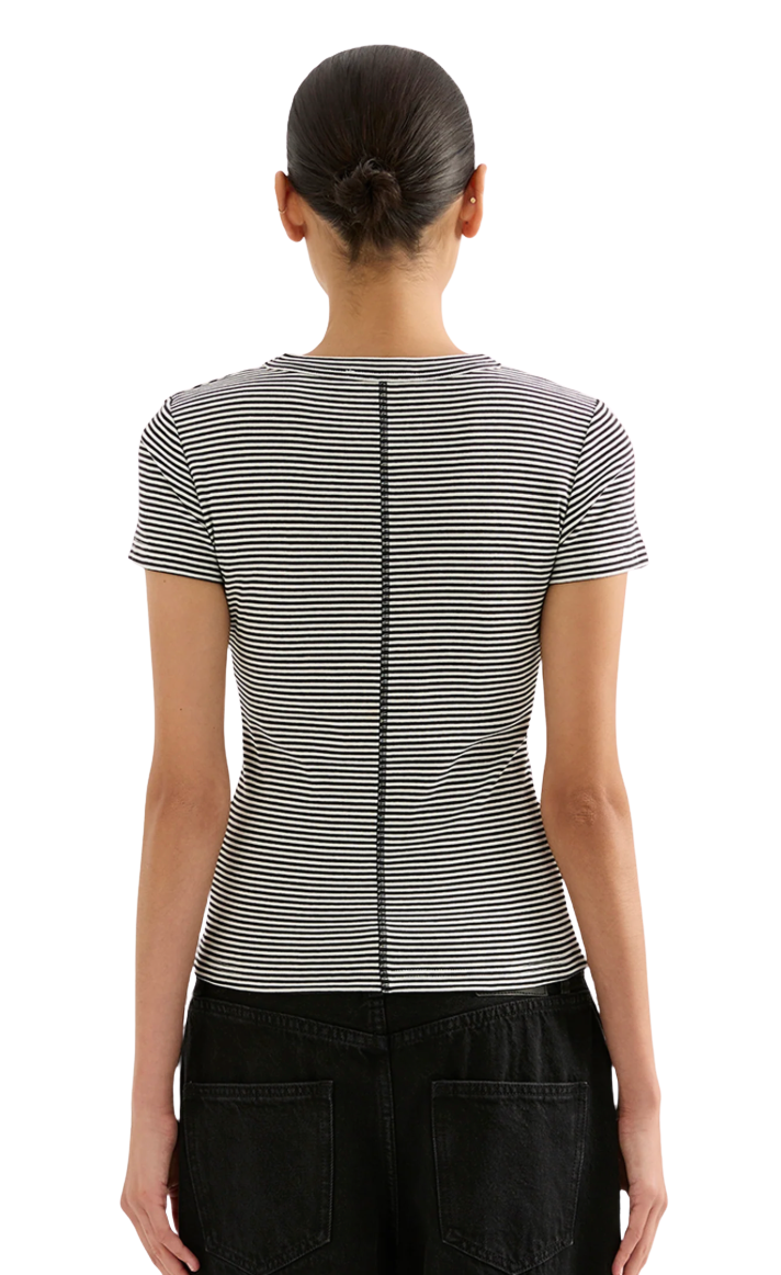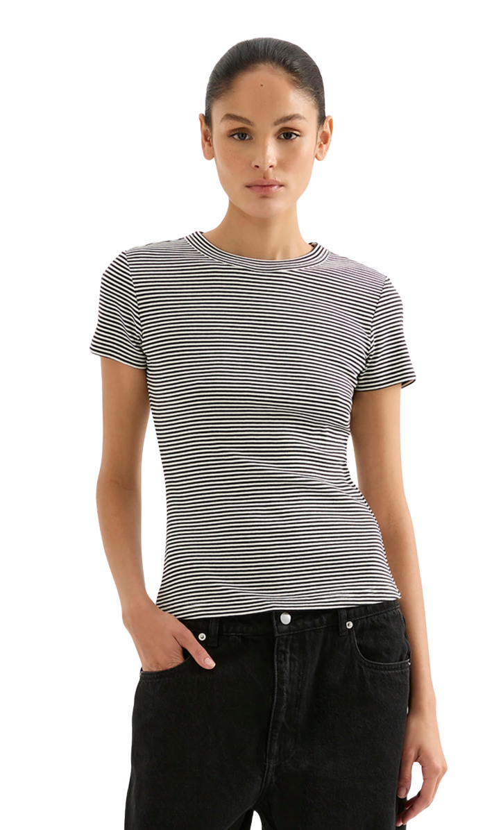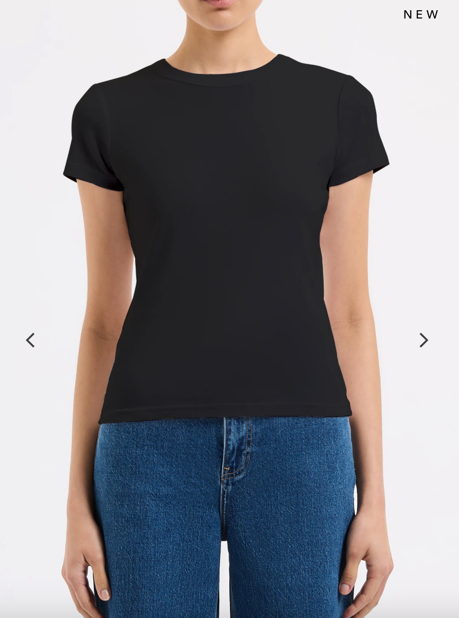The Organic Baby Tee is made from a lightweight organic cotton jersey, which has a soft, breathable hand feel. The silhouette is a flattering close fit and finishes at the hips. Features include a crew neck, and short, fitted sleeves. This can be tucked in or worn over midrise bottoms.