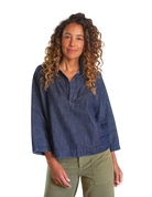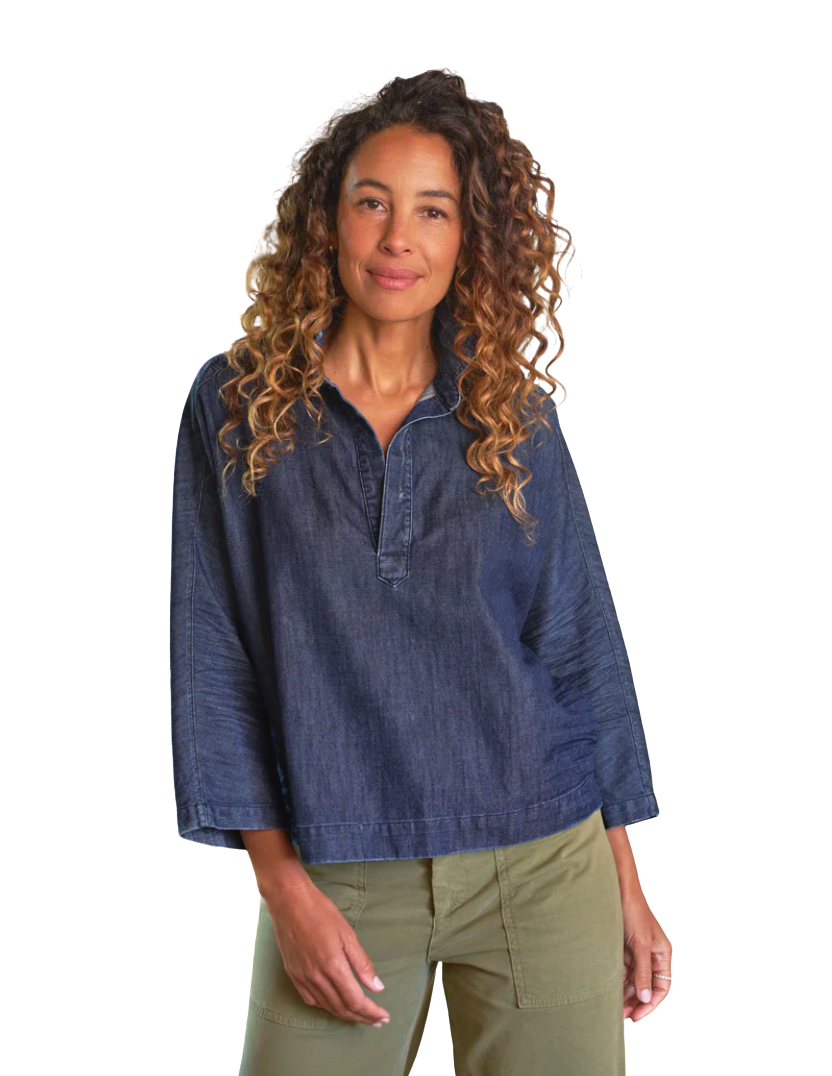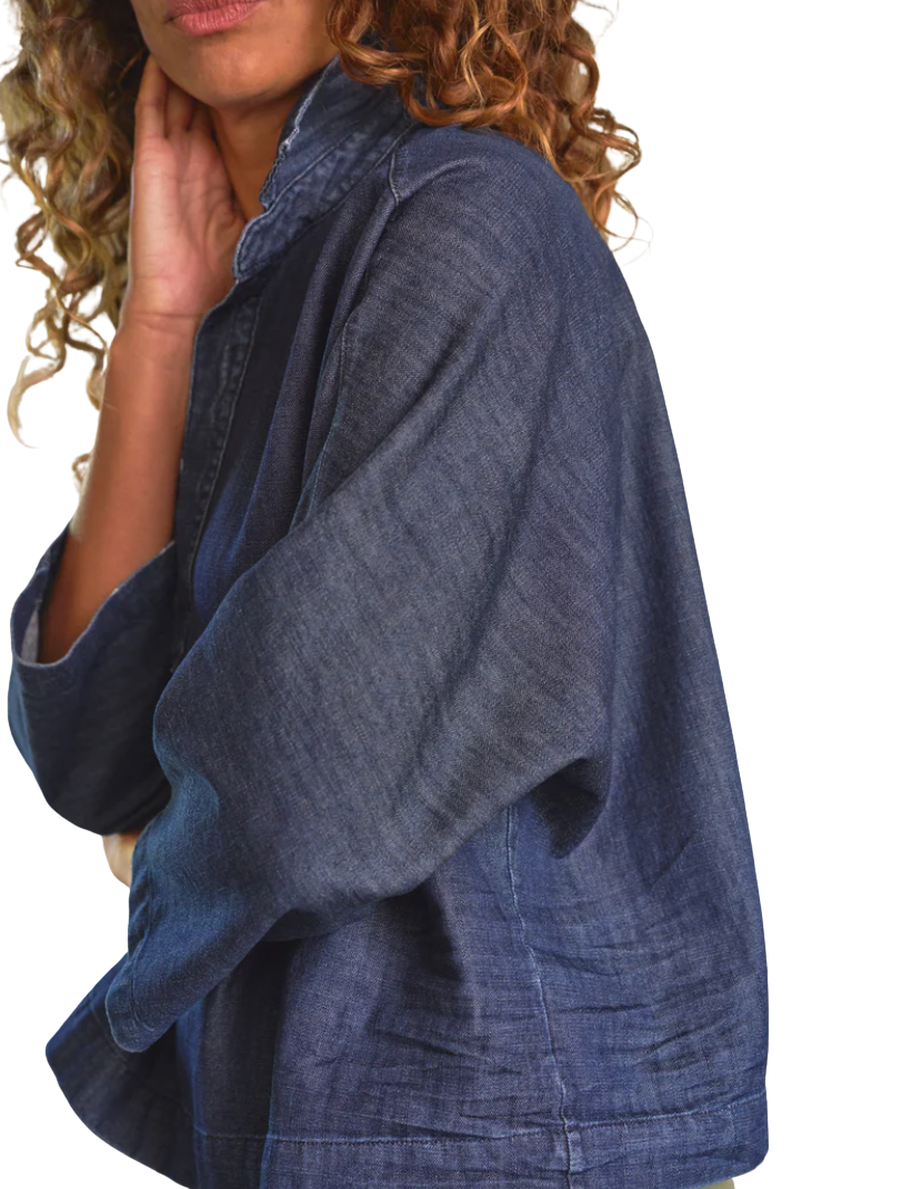 Gabi is laidback and feminine, with a flowy, continuous three-quarter-length sleeve. Designed for a slightly cropped, relaxed fit.