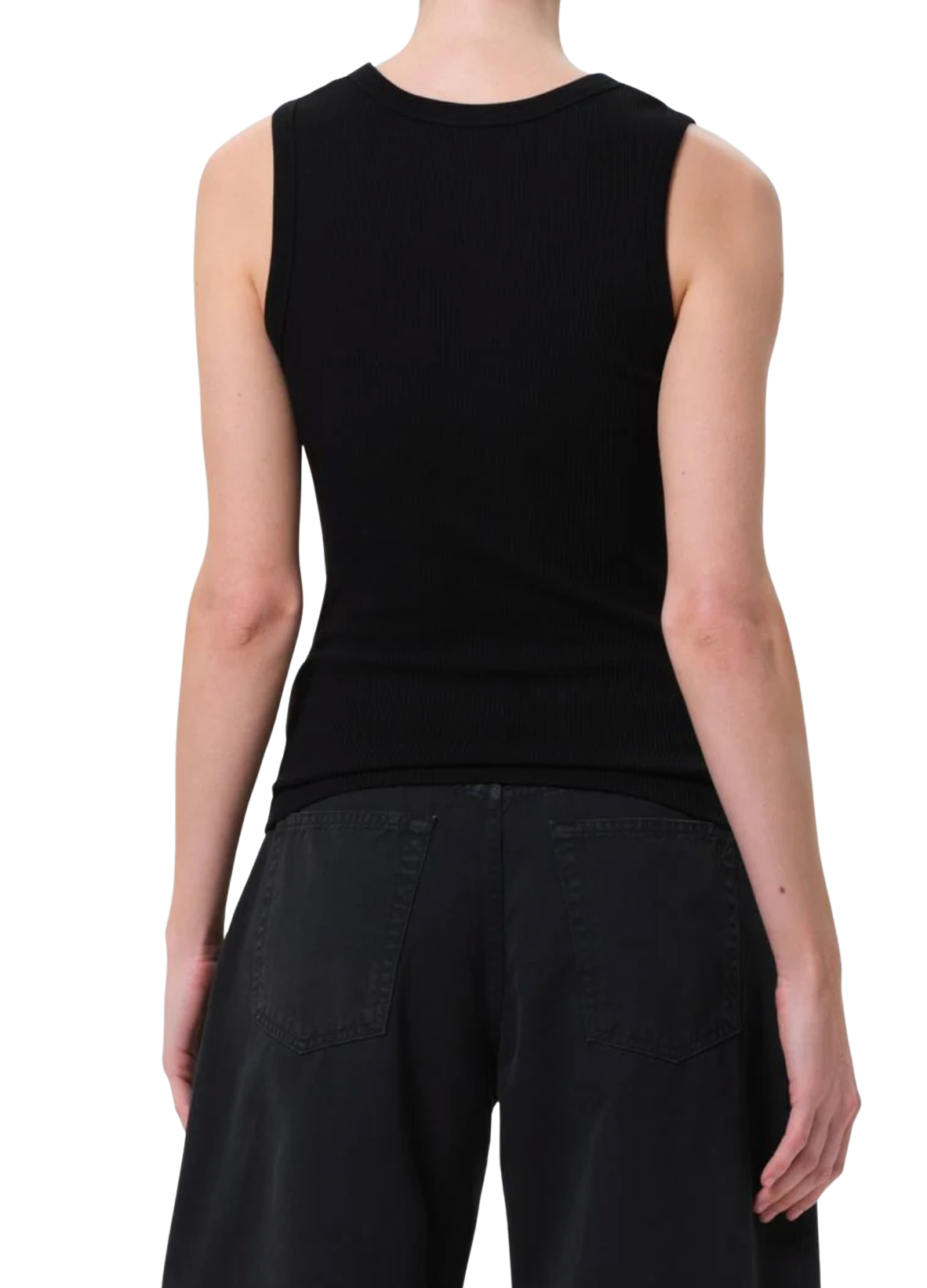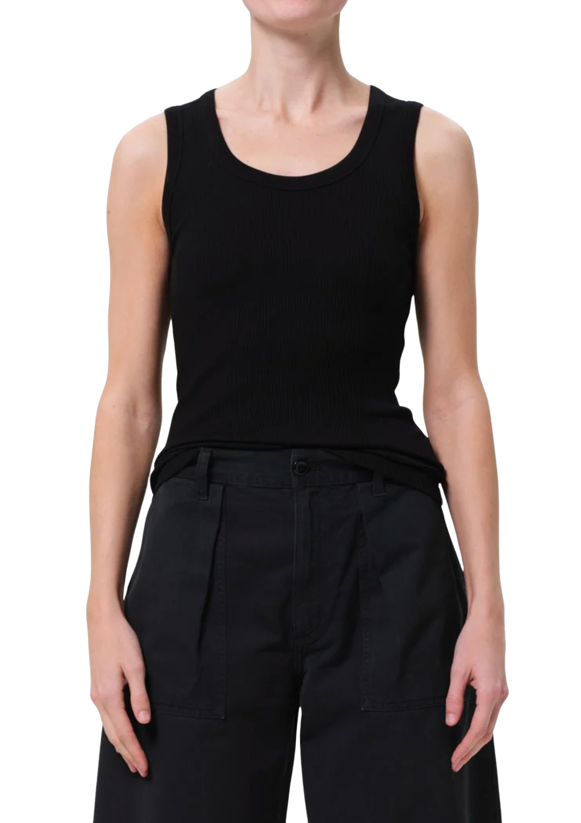 Looks Like: Stark black scoop neck rib tank