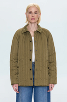 The jacket that works as hard as you do. Sawyer delivers utilitarian sophistication with a relaxed barn jacket silhouette and classic quilted construction that brings both warmth and style. The versatile design features functional details and comfortable proportions that make it perfect for layering over everything from tees to sweaters. Crafted from 100% polyester that's durable yet lightweight for all-day comfort. Olive brings grounded sophistication with its rich green tone.