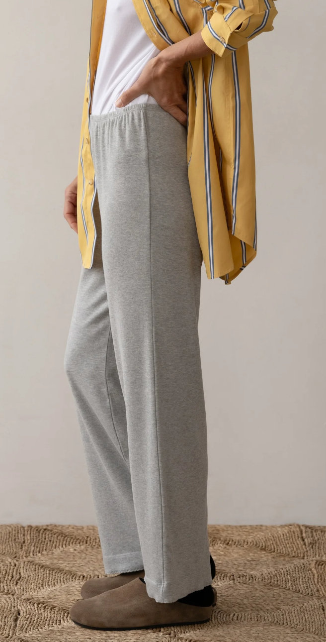The Baby Rib Scallop Pant features a buttery-soft feel, straight-leg silhouette, and scalloped trim. Designed with an elastic waist, cropped length, and subtle baby rib texture—easy to style, effortless to wear.