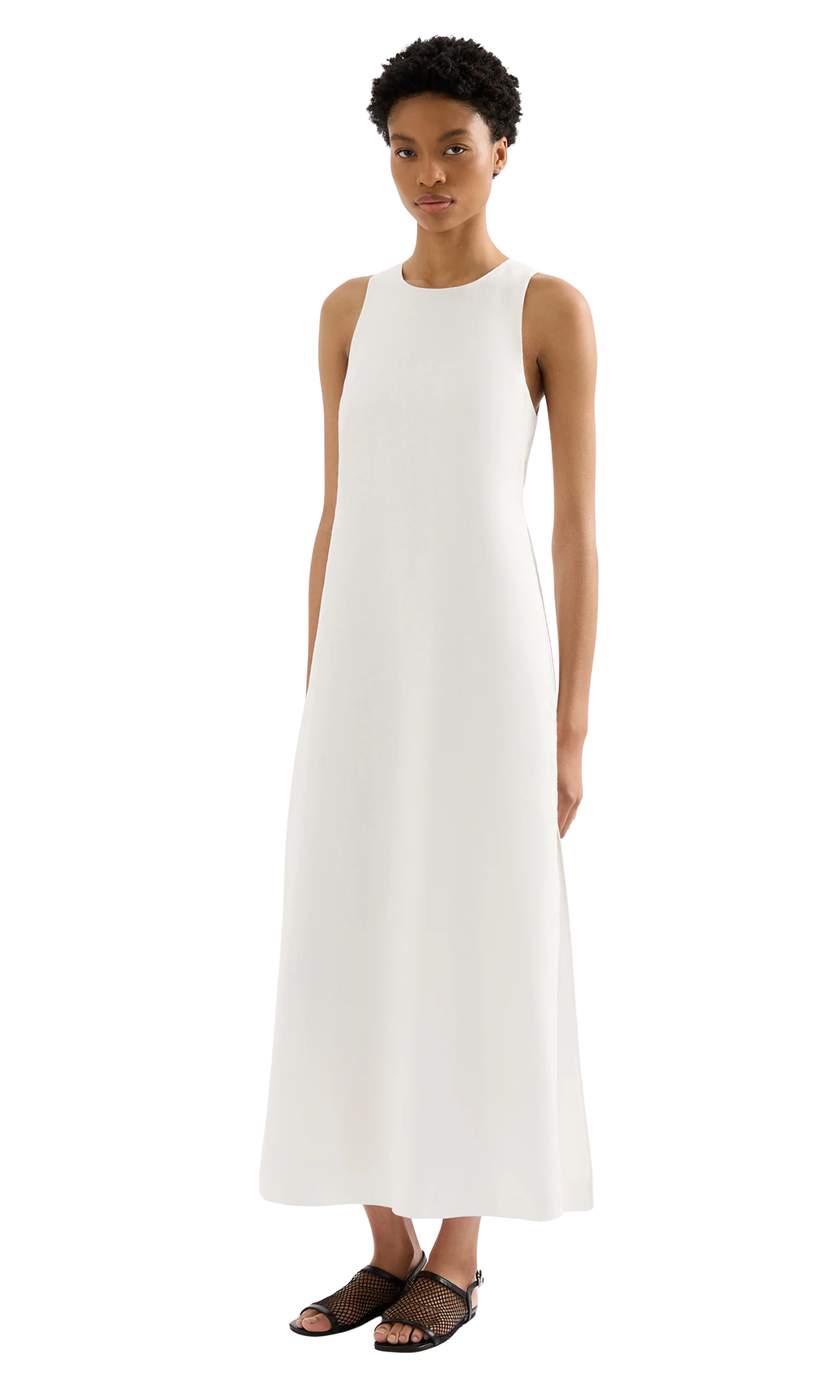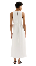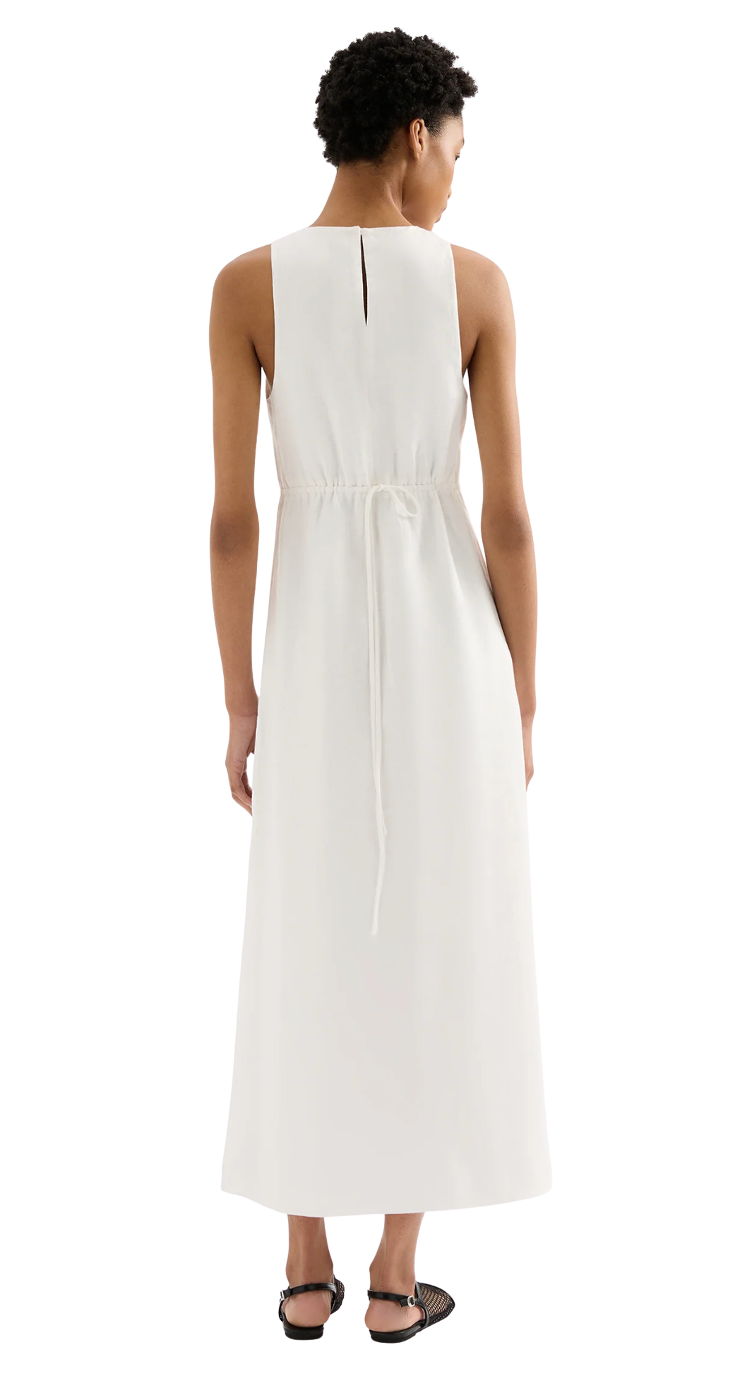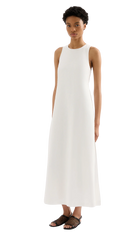 The Thilda Linen Maxi Dress is made from 100% Linen which has been washed for a soft, breathable hand feel. The silhouette is feminine with elastic and tie at the back waist and a full length skirt. Features include high neckline, button keyhole opening and slits at sides.
