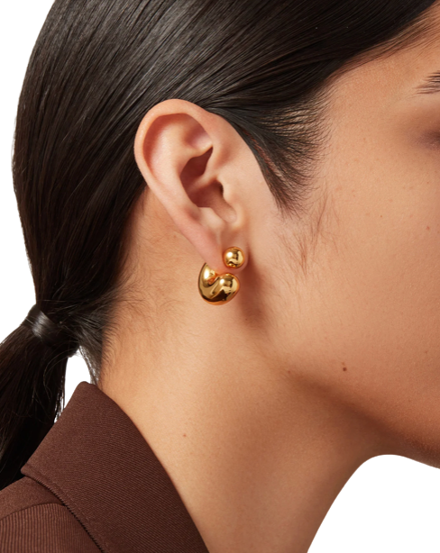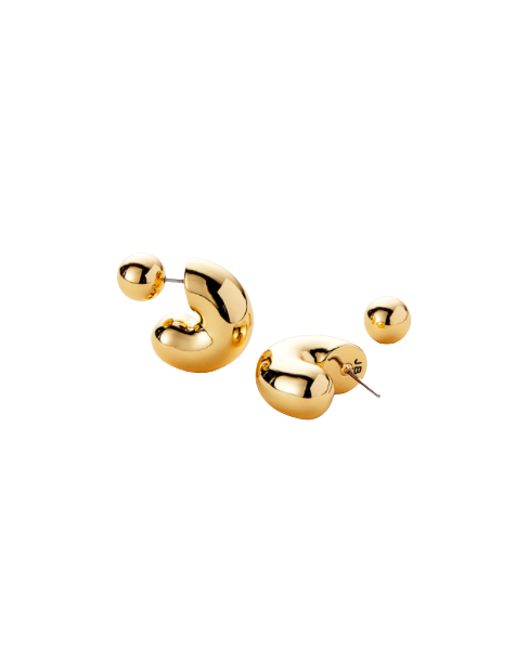 A tubular, chubby hoop with rounded ends and a custom JB ball backing. Finished in high-polish gold.