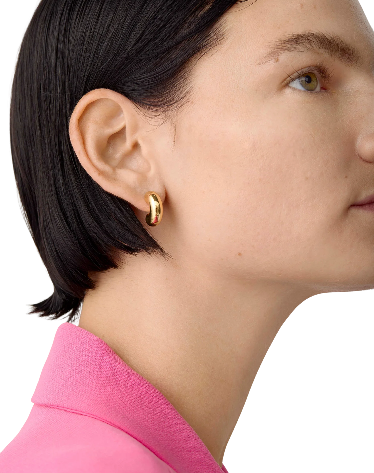 A tubular, chubby hoop with rounded ends and a custom JB ball backing. Finished in high-polish gold and silver.