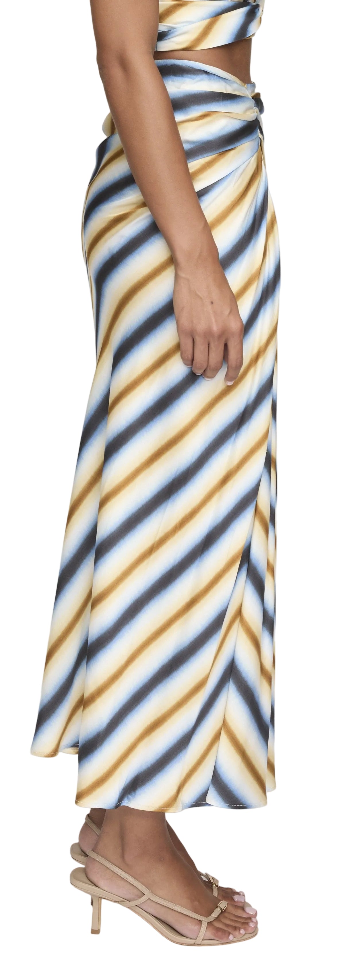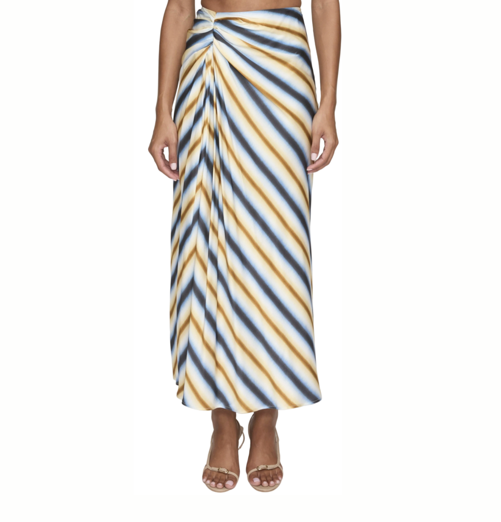 Sleek, modern, and effortlessly refined, the Jean Skirt by A.L.C. brings elevated ease to everyday dressing. Designed with a fluid silhouette, this midi skirt features a striking diagonal stripe print in soft neutral tones, creating a dynamic, elongating effect.
