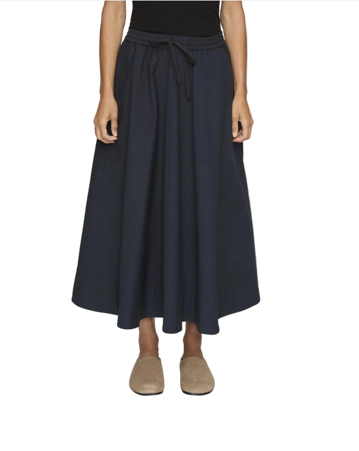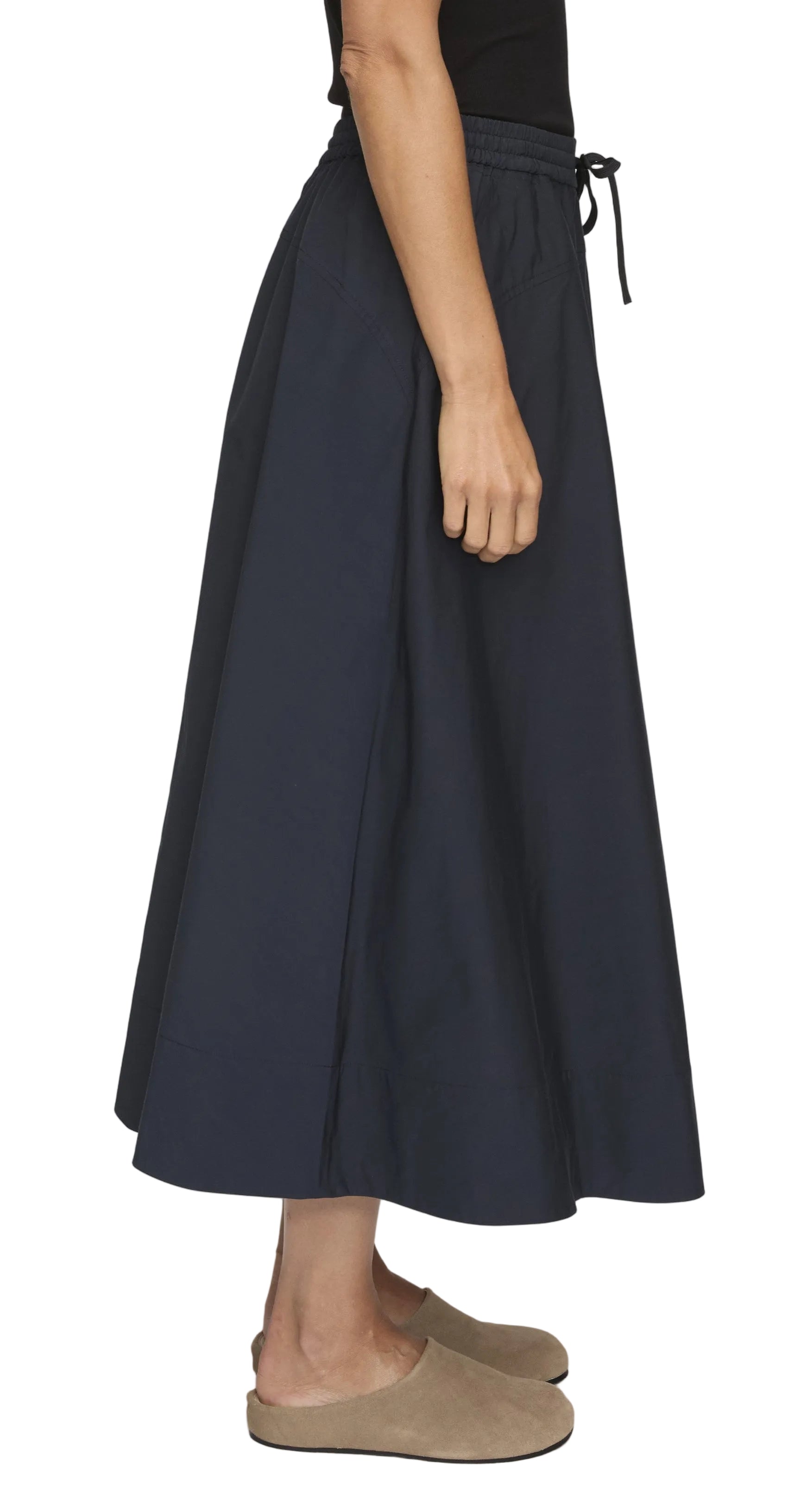 The Remy Skirt from A.L.C. is crafted from Tech Radzimir in a rich night blue hue. Designed for effortless movement, this mid-length silhouette features a pull-on elastic waistband with drawstring detailing that feels relaxed yet polished. It’s the kind of piece that looks intentional without trying too hard—easy, modern, and quietly elevated.