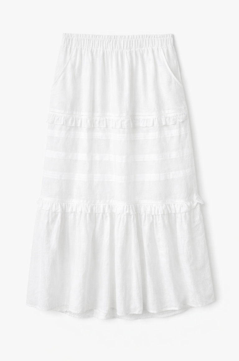 Long cotton voile shirt with lace and embroidery detail. Elastic waist to fit perfectly.