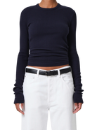 Minimal must-have. Our Bina is crafted in our signature Organic Cotton with the perfect amount of stretch that will hold its shape all day. With a slim-fitting silhouette and layering-friendly sleeves, style under a blazer for the office or wear on its own with your favorite pair of denim.