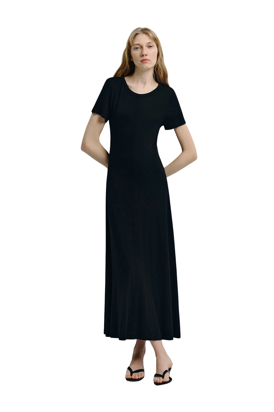 A fluid silhouette with a crew neckline, designed for effortless movement. Crafted from a soft viscose blend, it drapes with ease for a cool, lightweight feel.