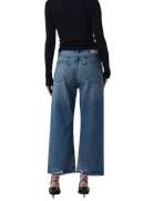 With a high rise and relaxed wide leg, the Gaucho offers a vintage-inspired shape designed to flatter and move with ease. Crafted from rigid denim made with a blend of regenerative cotton, recycled lyocell, and post-consumer recycled cotton, the silhouette holds its structure while softening beautifully over time. The Solano wash—a dark-to-medium indigo with fading, whiskering, and subtle distressing—adds a broken-in, lived-in feel. Pair with crisp shirting or minimalist tanks.