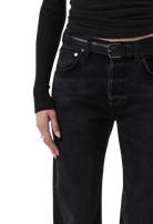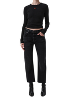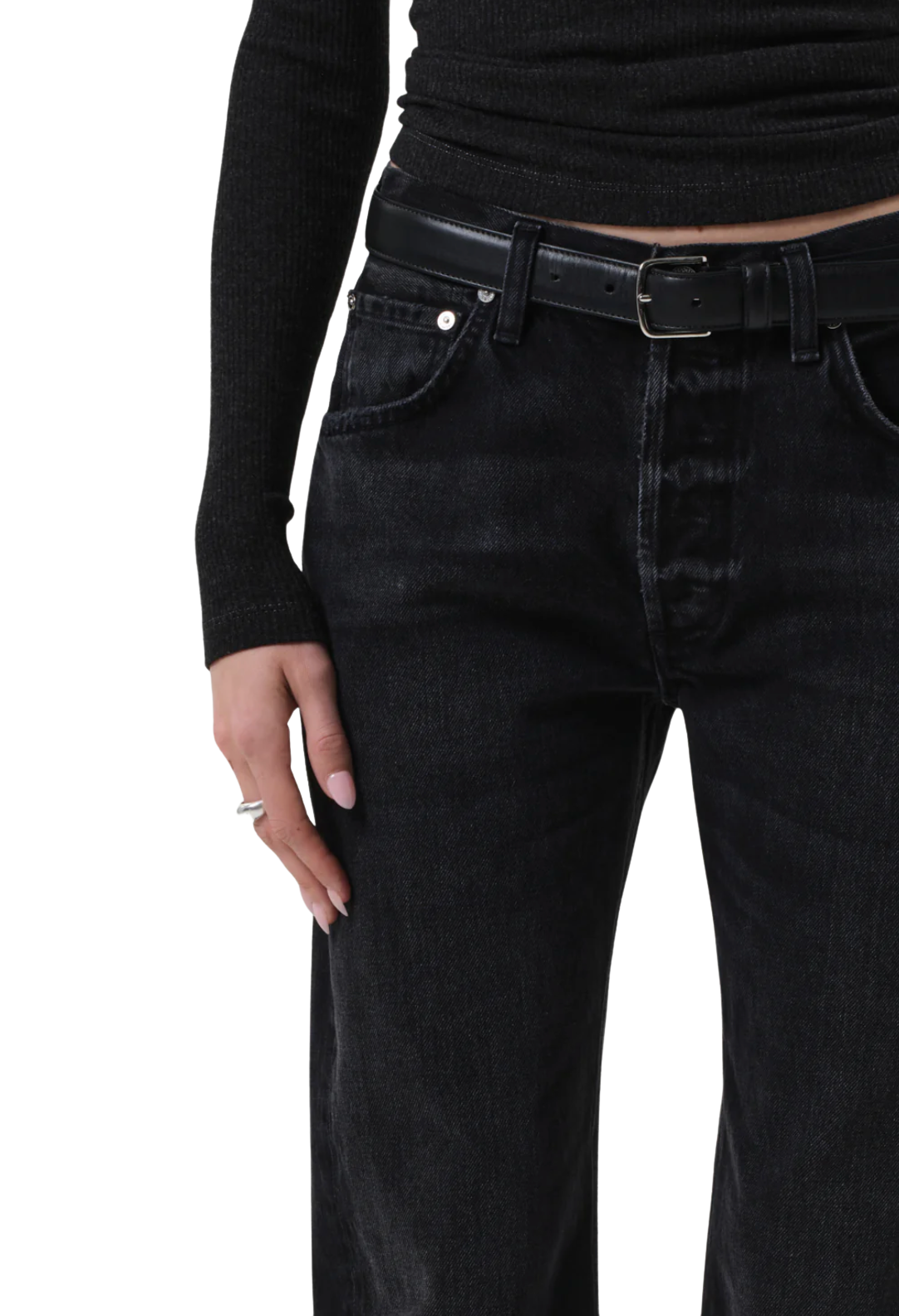 The Winslow is a modern take on the boyfriend jean, designed with a low rise and a relaxed fit through the leg. Crafted from rigid regenerative cotton with a soft hand, it holds its shape while offering an easy drape. Raine’s washed black denim gives the silhouette a softened, worn-in edge—ideal styled with everything from a boxy tee to a structured blazer.