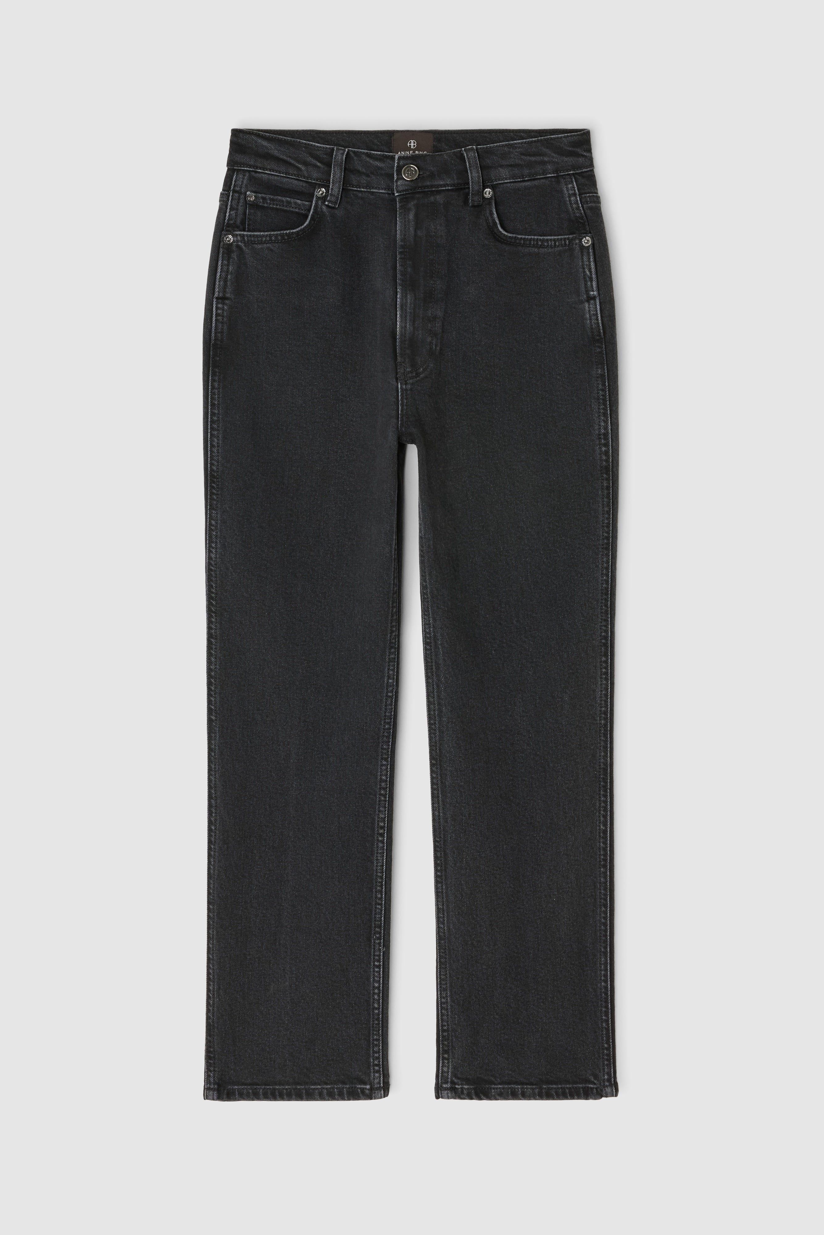 A timeless high-rise jean with subtle fading crafted for everyday wear. The Jane's slim silhouette is cut from black denim with stretch for ease, comfort, and a naturally worn-in feel. Designed with five-pocket styling, belt loops, and a zip fly with button closure, this versatile style pairs effortlessly with tees, knits, and tailored layers.