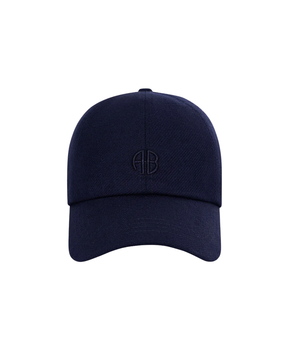 An elevated cashmere-blend hat in navy with monochrome stitching and embroidered ANINE BING logo at front.