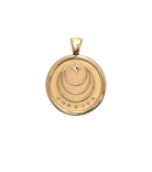 - Coin pendant made of sterling silver dipped in 14k gold, measuring 0.975" in diameter.