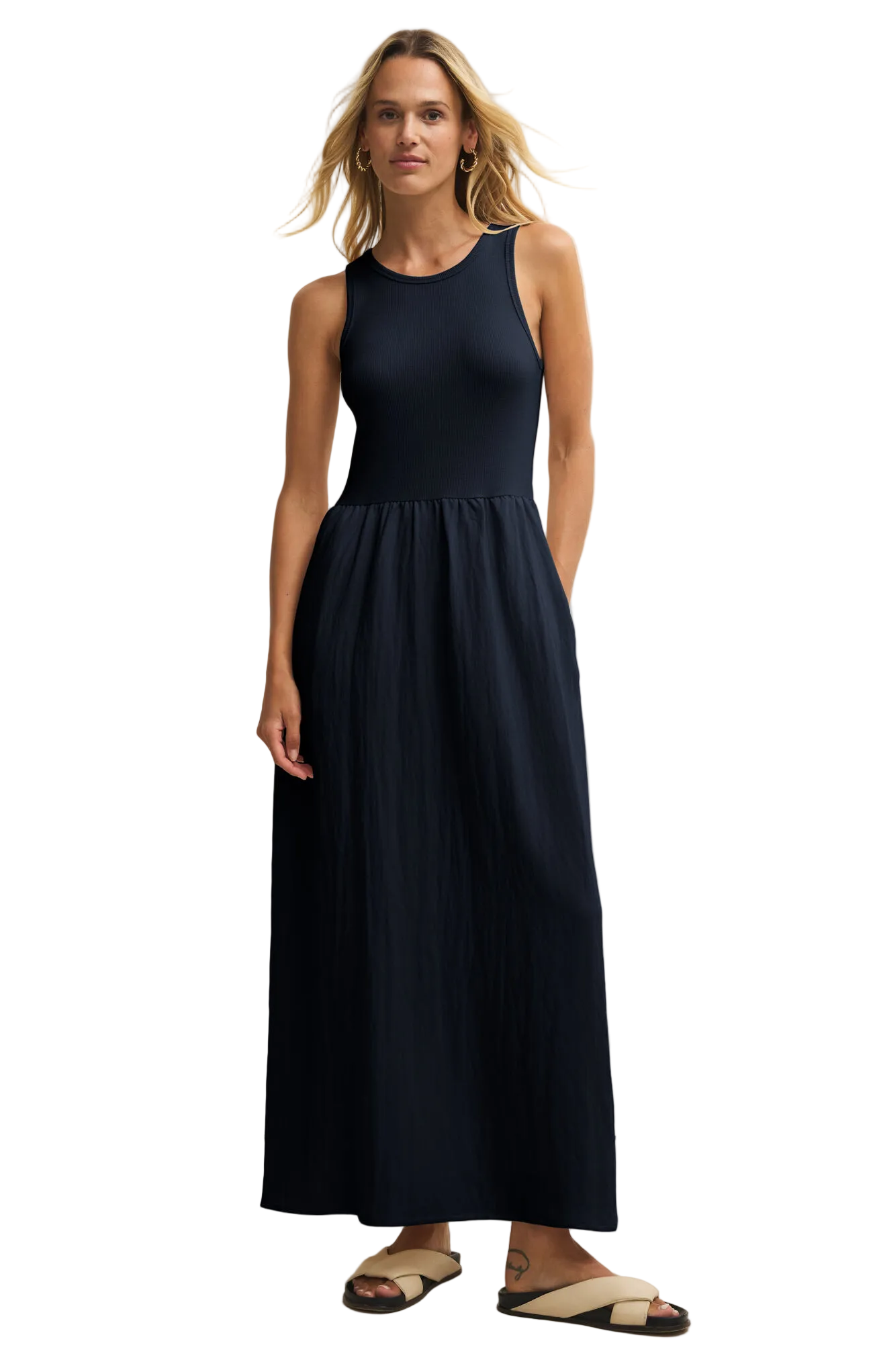 Your new everyday dress fits just right, with a fitted top that meets an airy skirt with pockets.