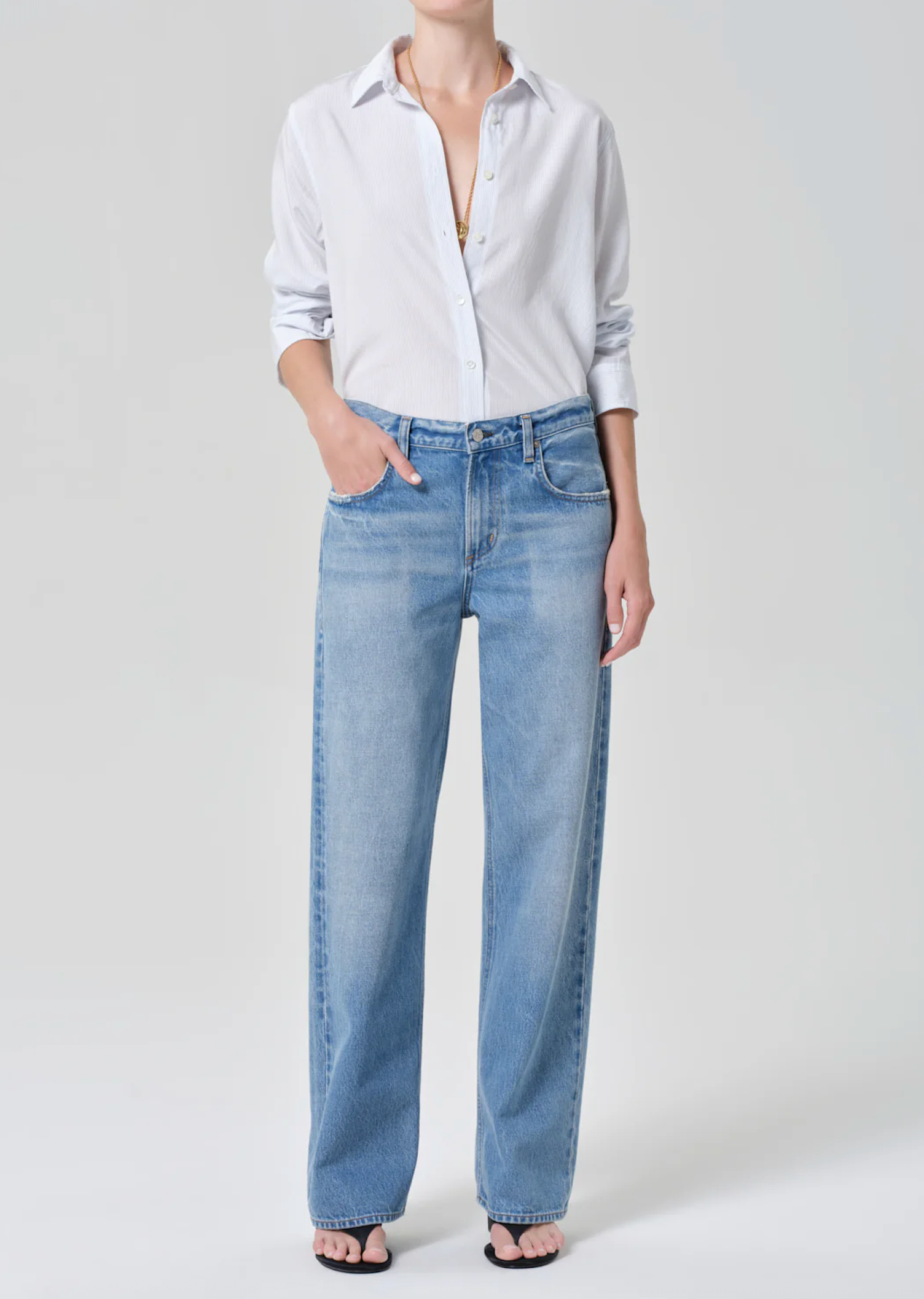 The ‘Lindz’ from Citizens of Humanity is a relaxed straight leg with a low rise and an effortless attitude. Crafted from rigid regenerative cotton with a soft hand, it offers vintage appeal with modern ease. The Cupid wash is a light-to-medium indigo with subtle fading—ideal with everything from crisp shirting to worn-in tees and sneakers.