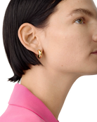 A tubular, chubby hoop with rounded ends and a custom JB ball backing. Finished in high-polish gold and silver.