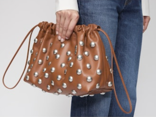 The Arlo Bag by A.L.C. is crafted from buttery-soft lamb leather, punctuated with silver dome studs for a bold yet refined edge. This shoulder silhouette features a softly ruched top and a slender adjustable strap, striking the perfect balance between structure and slouch. Modern and versatile, it’s a statement piece that still feels effortless.