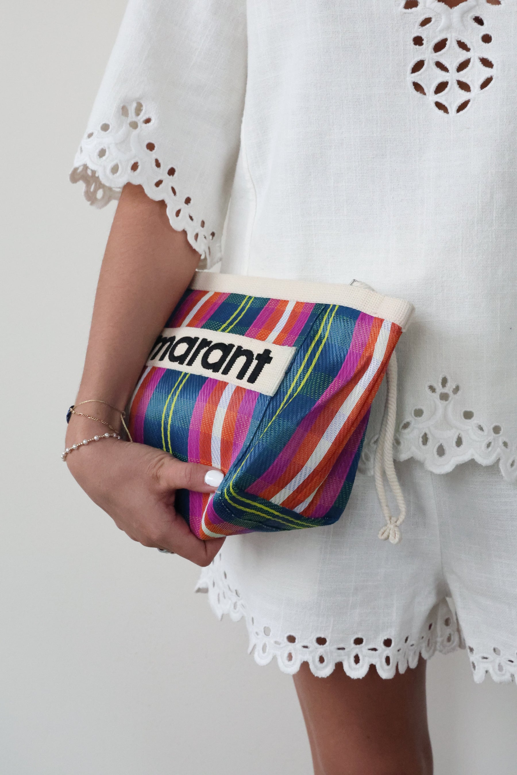 Striped nylon pouch