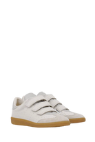 Low-top sneakers in soft perforated leather Suede leather insert on the toes Round toes Three Velcro straps for fastening Logo printed on the back Soft leather lining