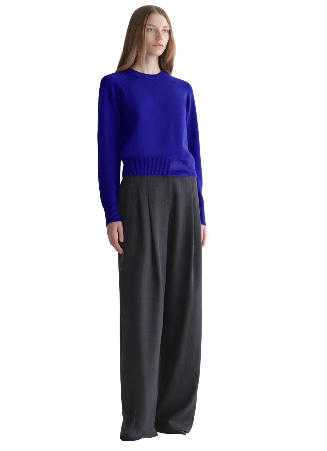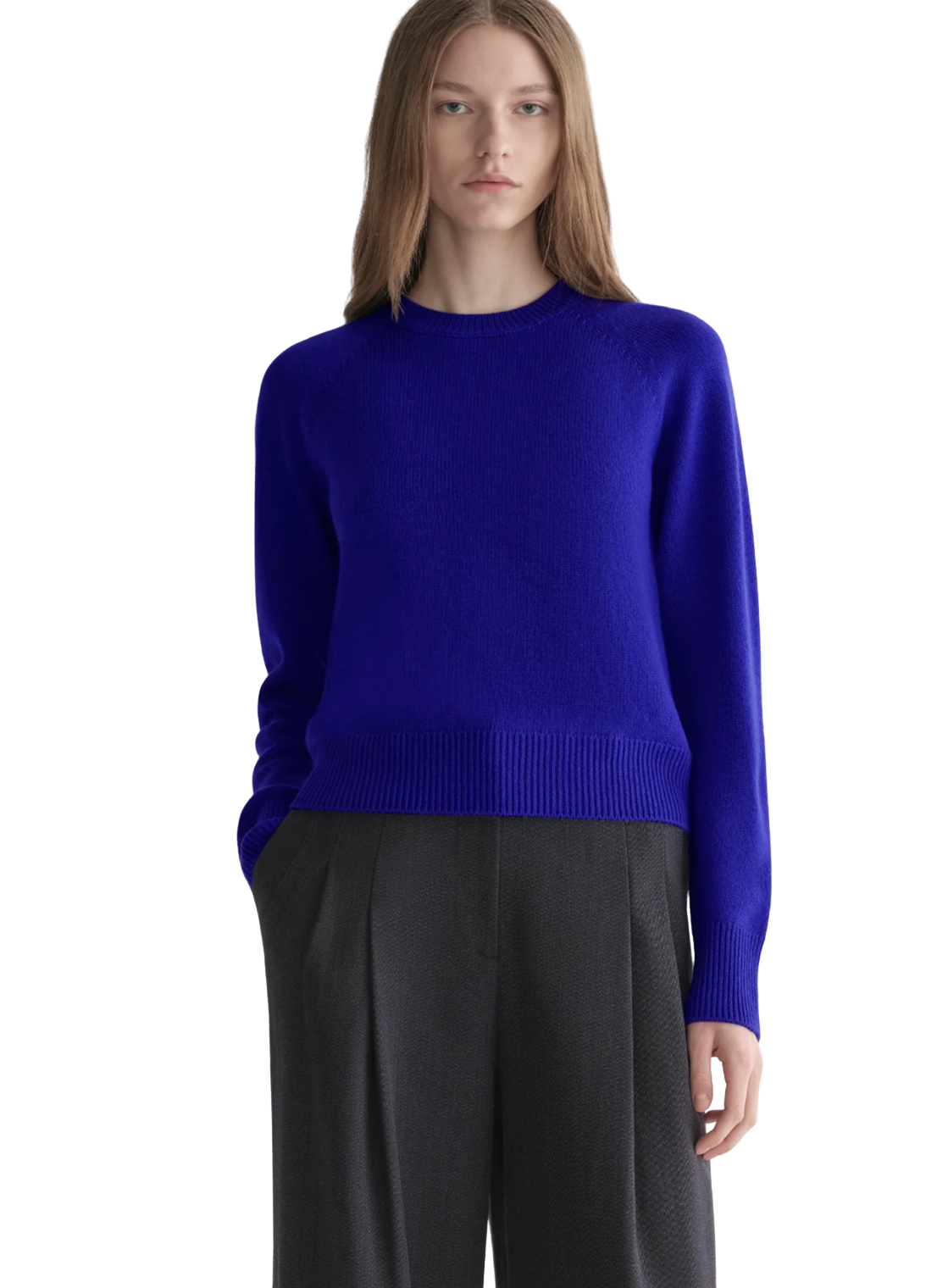 The Ashtyn Sweater is the crewneck you’ll wear three times a week without realizing it—now in a rich cobalt blue hue. Knit from 100% cashmere, it’s a body-skimming essential that’s lightweight yet warm. Designed to sit at the top of your trousers, it's easy enough to throw on with denim and polished enough to layer under a jacket—this is the definition of everyday luxury.