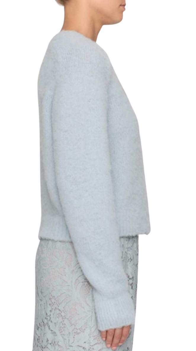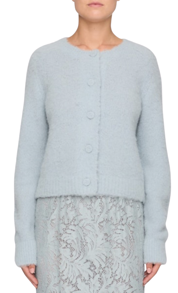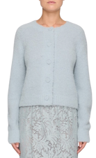 Knitted in brushed Italian alpaca yarn, this shrunken cardigan is soft and lightweight with matching buttons for a clean finish.