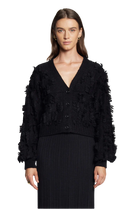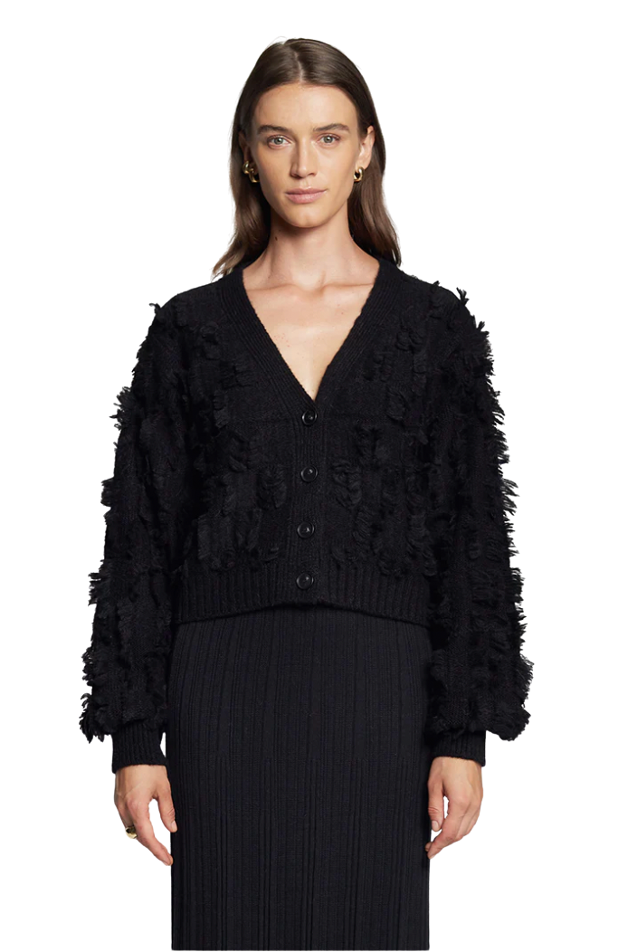 Luella is an emotional, must-have cropped cardi with feminine blouson sleeves. Knit with the softest air-spun alpaca yarn in a sumptuous, fringed all-over texture stitch. This piece can be styled in a relaxed or dressy way, whatever your mood!