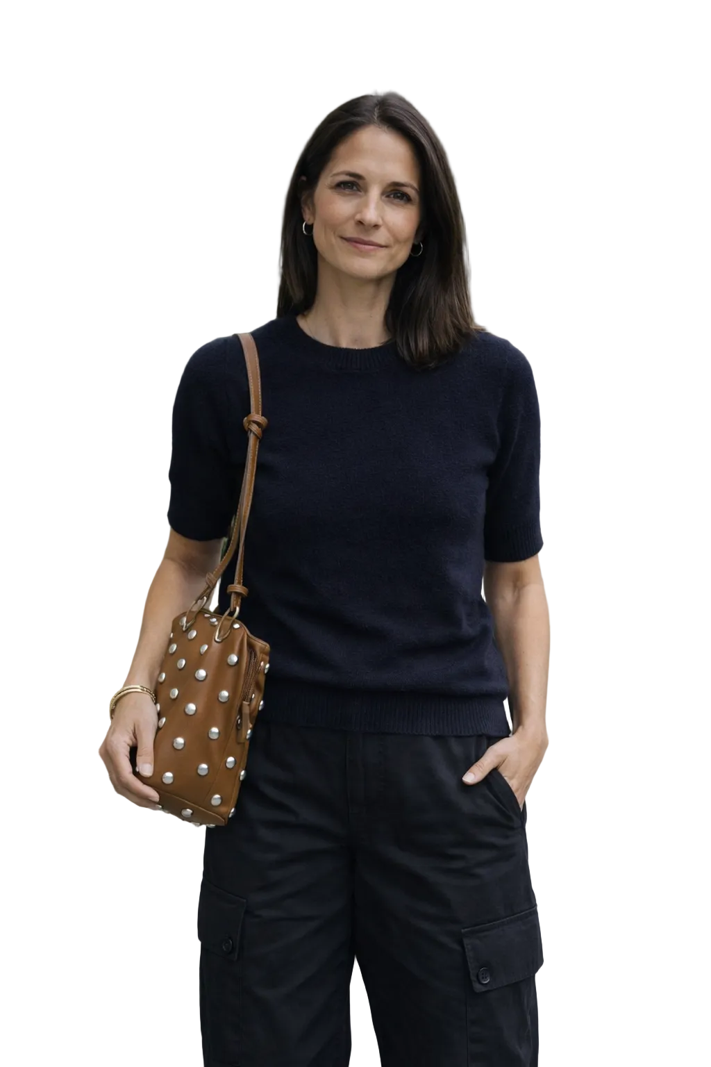 This cotton boucle top by ALC is a great basic for any wardrobe. It runs true to size and is dark navy blue.