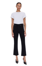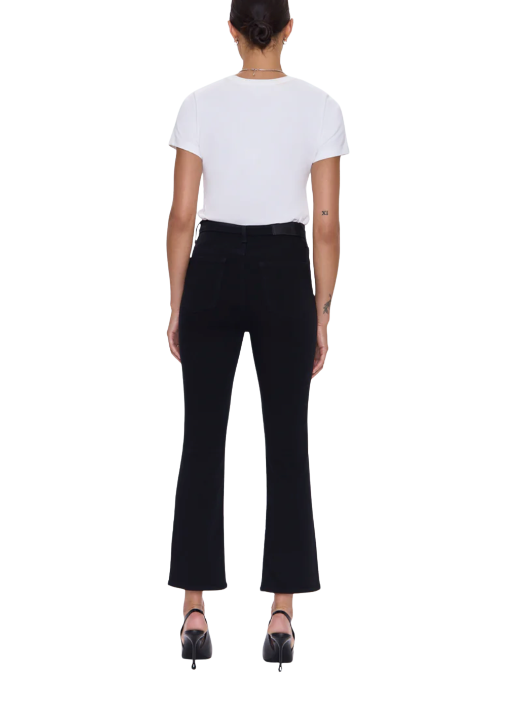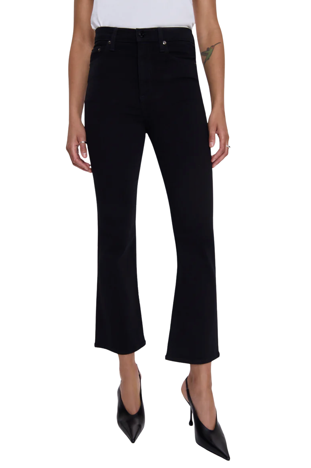 The only bootcut you'll need. Lennon sits at a high rise before flowing into a classic boot leg silhouette that hits at the perfect cropped ankle length, finished with a 27" inseam. Crafted from our best-selling comfort stretch denim in Noir, a rich black.
