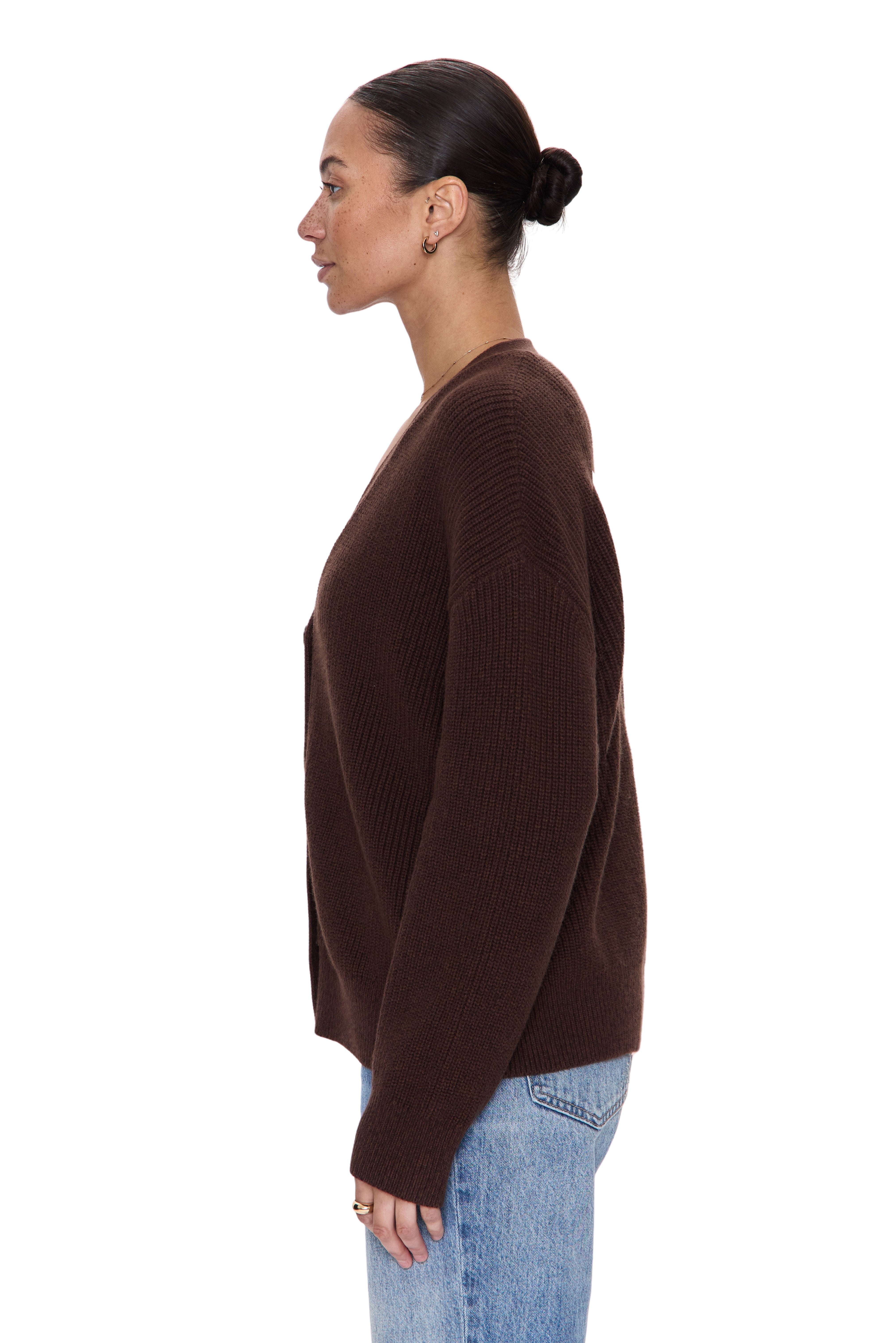 Dropped shoulders enhance the relaxed longline fit of this V-neck cardigan that's kissed with cashmere for a luxe look and feel.